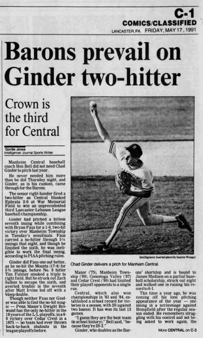 1991 Lancaster-Lebanon Championship Game - May 16, 1991: Manheim Central 2, Ephrata 0